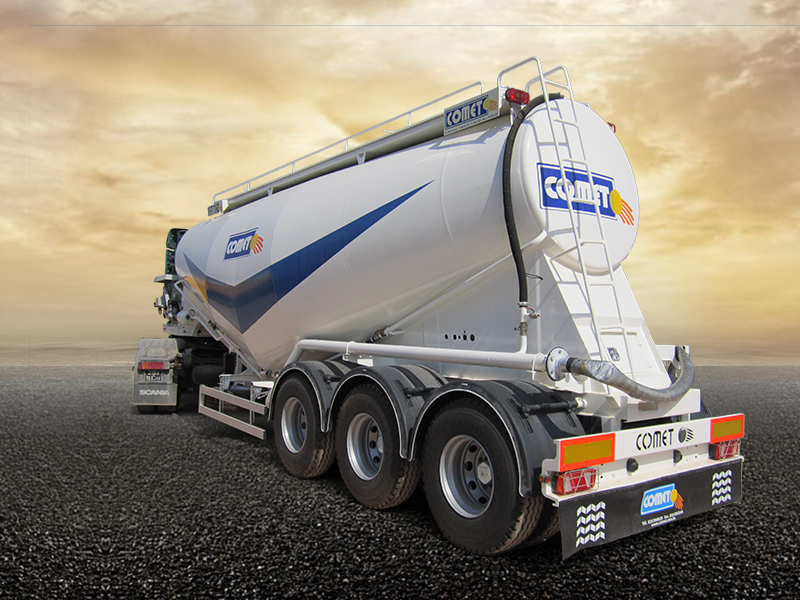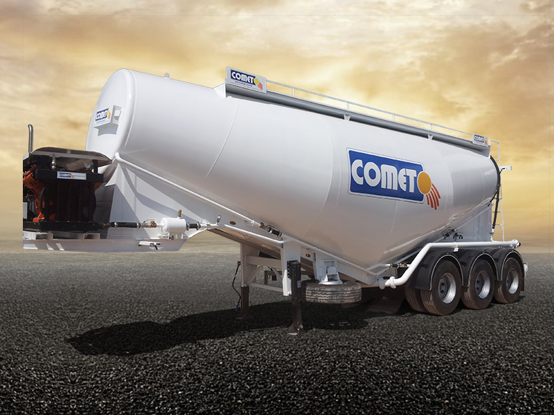 La semi-remorque citerne à ciment COMET est disponible en plusieurs modèles et volumes. On distingue deux grandes familles : la citerne en Vé et le modèle européen en multi-silos. Elles sont toutes destinées au transport de différents types de produits granulés en vrac tels que le ciment et de divers produits chimiques. Les volumes offerts varient entre 26 et 42 m³. Suivant la demande du client, la citerne peut être équipée avec un moto-compresseur permettant une autonomie de déchargement.Demande de devis "Semi-remorque Citerne à Ciment DE 26 m³ à 42 m³"